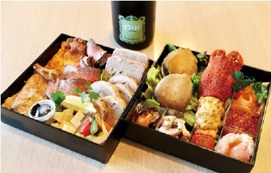 一の重は“海の恵み”、二の重は“大地の恵み” をテーマに、伊勢エビやアワビ、ズワイガニ、国産牛などの厳選素材を使った華やかで豪華な料理がぎっしり詰まっています。ラザニアやキッシュ、ローストビーフに加え、ライスコロッケも!お子さまが大好きなメニューも入っておりますので、ご家族みんなで楽しんでいただけます。